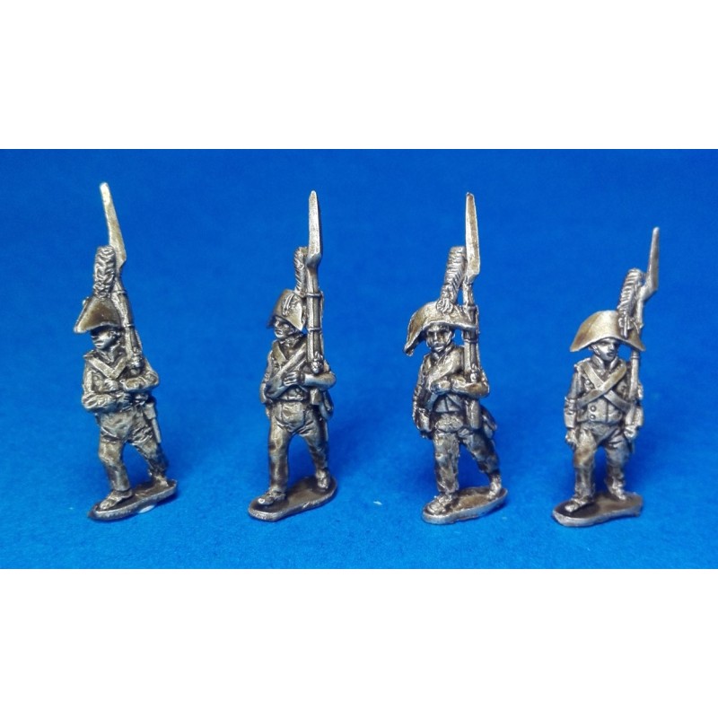 4 different models of riflemen in bicorn marching in bag of 8 figures.