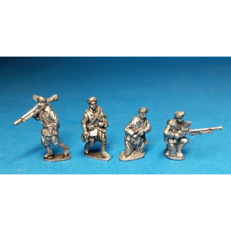 Four different figures of Moroccan regular’s infantry with LMG in 1/72 scale. Made in white metal.
