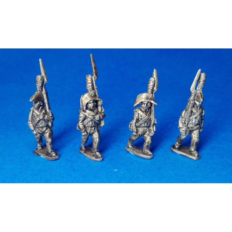 4 modelos diferentes de fusileros en bicornio marchando en una bolsa de 8 figuras. TODAS LAS FIGURAS SE VENDEN SIN PINTAR.